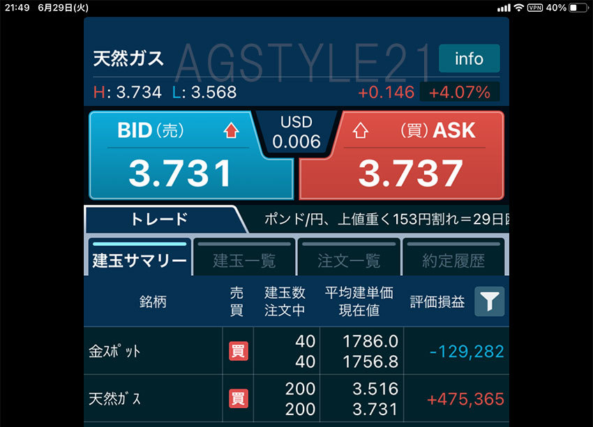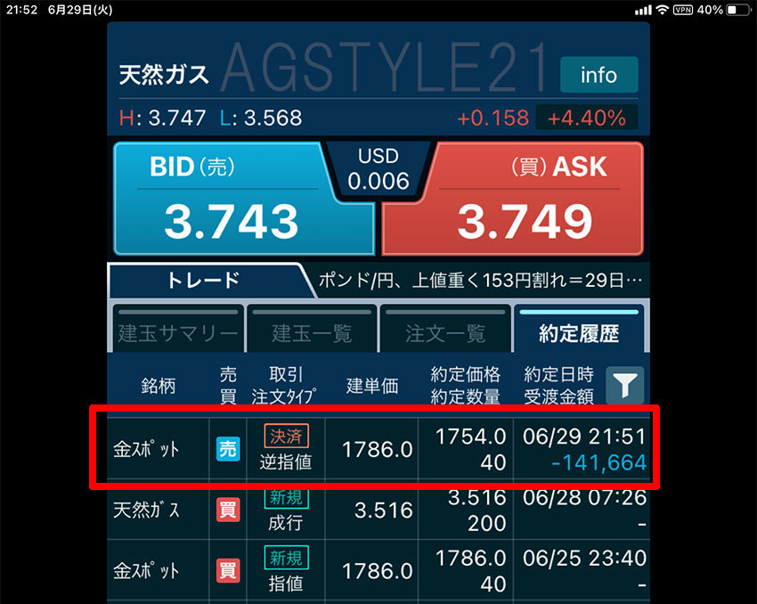 日曜日の記事で「翌日買う銘柄」として公表した「天然ガス」ですが、朝7:00のマーケット開始から見ているとギャップダウンの下落でスタートでした。