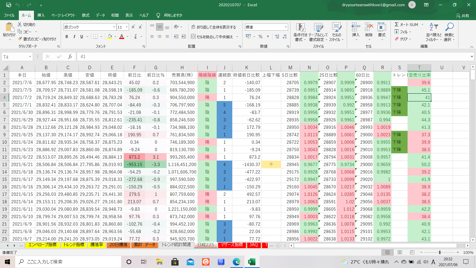 日経平均の下降トレンドがまたもや短期で