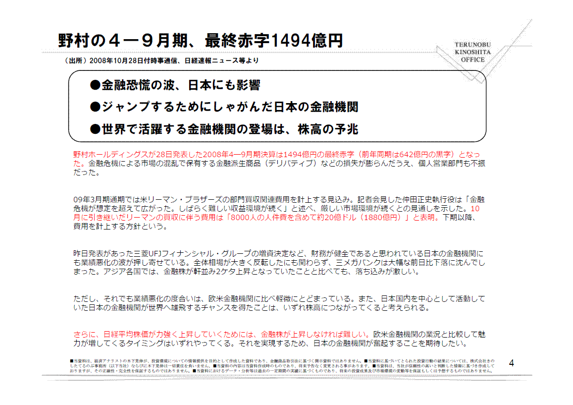 (出所)2008年10月28日付日本経済新聞朝刊15面より