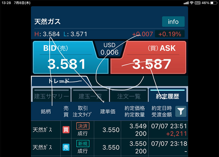 儲け損ねたと言いながら天然ガスと原油ではわずか数日で100万円以上儲けさせていただきました。