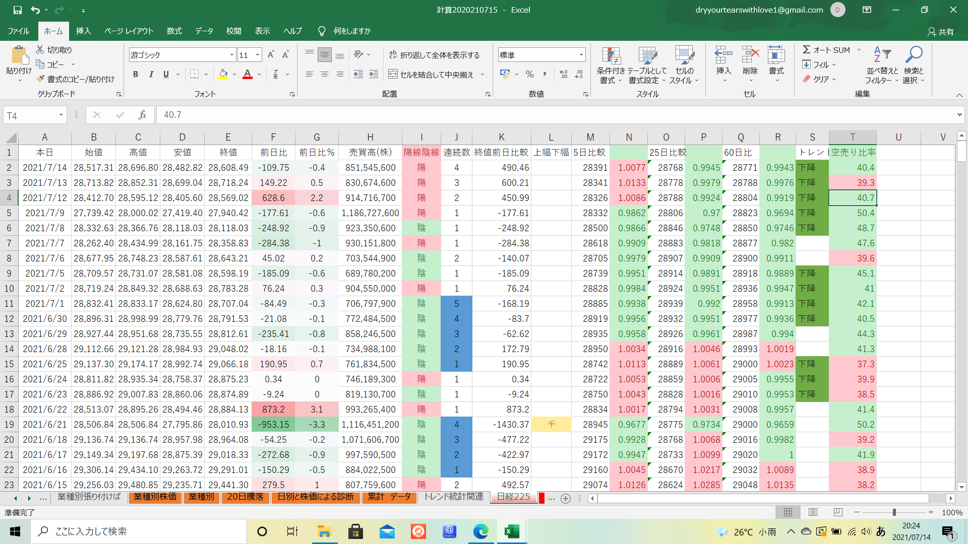が下落銘柄が多かったは昨日一昨日と上昇が多かった