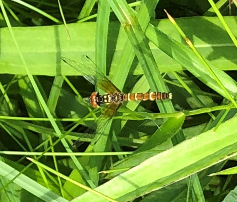 東山植物園のはなと珍しいハッチョウトンボのメスの出たばかりの個体。