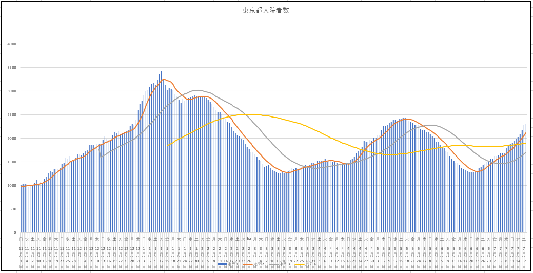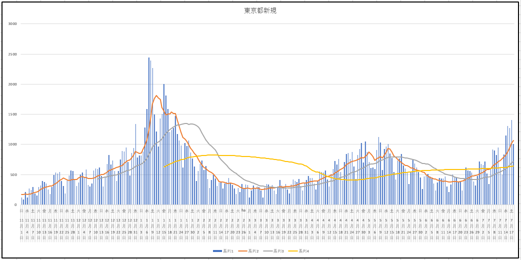 あたりまえか。いつもの感染データは東京都の新規グラフだけ。