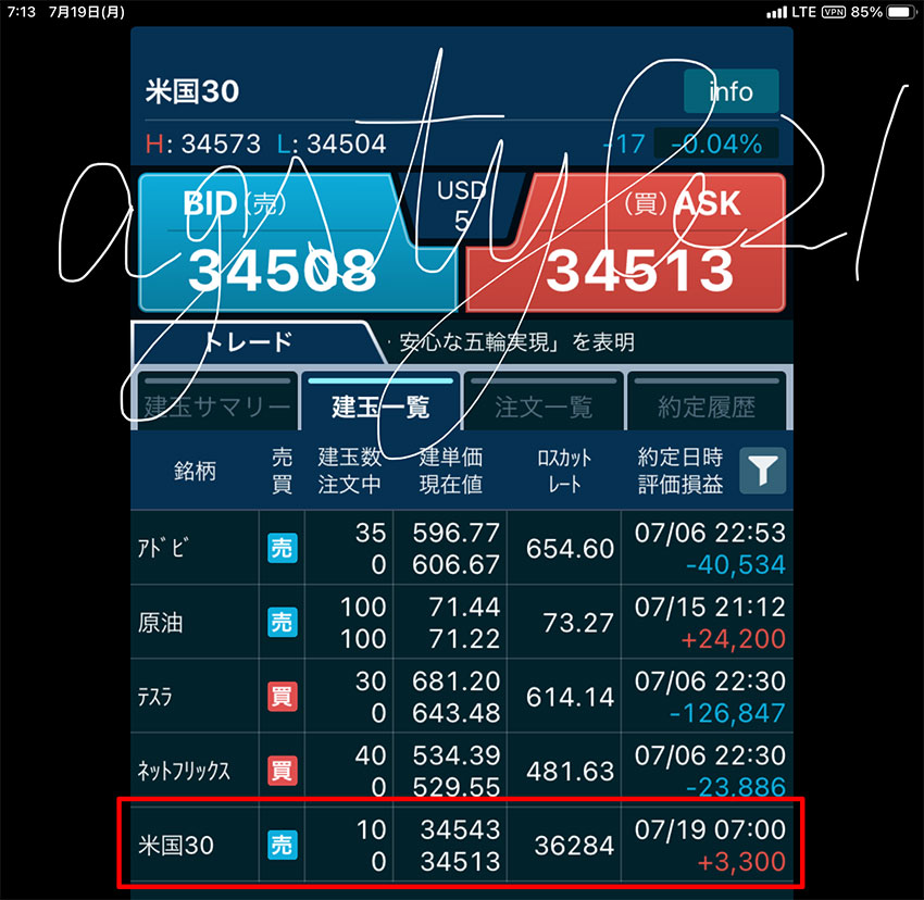 アメリカ株については原油CFDを空売りした時点で4銘柄のトレード中ということで、更にトレード銘柄を増やすことに躊躇したことと、アメリカ株というのがよくわからずGMOクリック証券でも取り扱っていないと勝手に思い込み、調べる気もあまりなかったので放置していました。