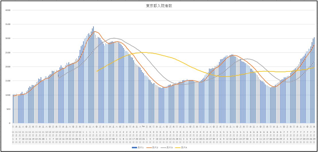 東京都の入院患者数推移。正月明けよりまだやや小さいが。