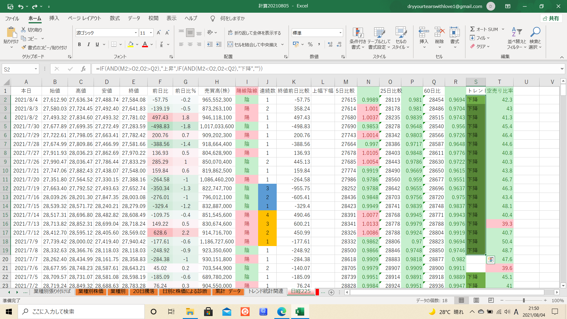 下降トレンド継続日数は18日となります。