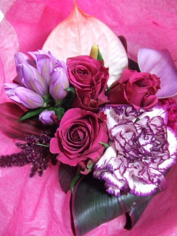 お花は濃いめのピンクベースで、落ち着いているのにかわいい感じで素敵です☆