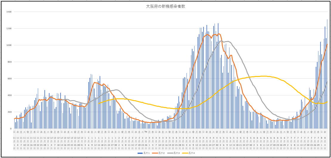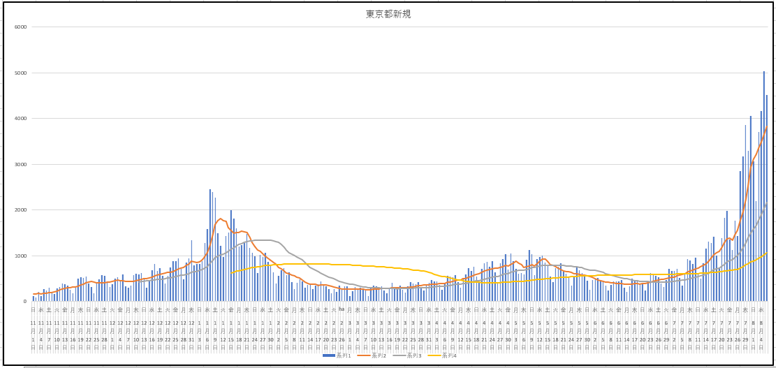 新規感染者数の推移を並べて見ましょう。