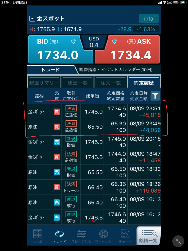 原油は含み損が一時10万円を超えましたが、その後下落が始まり予想通り含み益も少なくなってきました![]()
