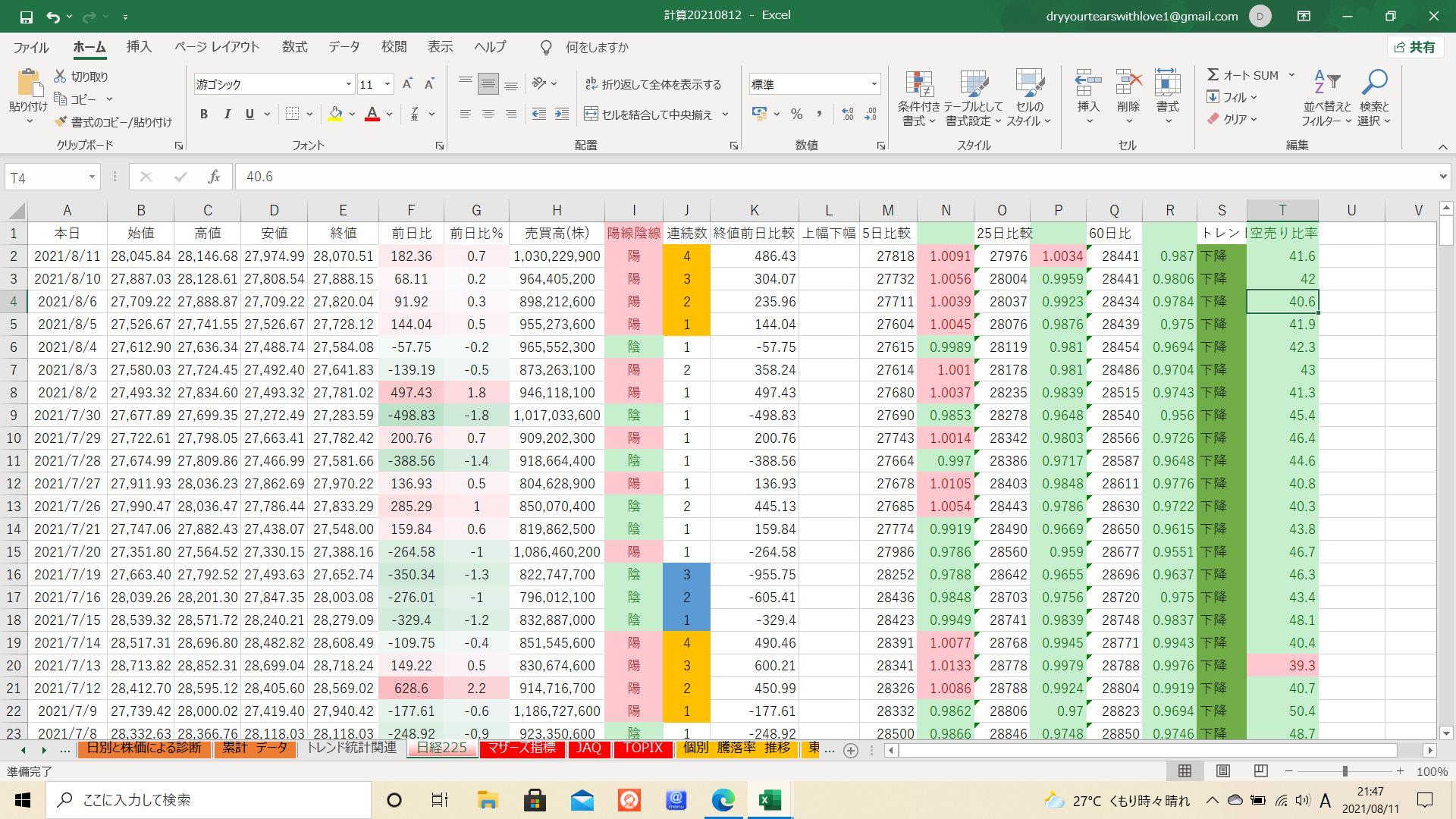 下降トレンドは22日目ですが