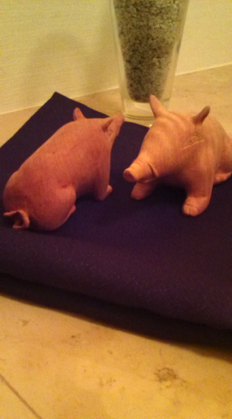 最後に、既にシリーズ化の気配すらありますが、父親からの手彫りの豚!(×2、写真右)