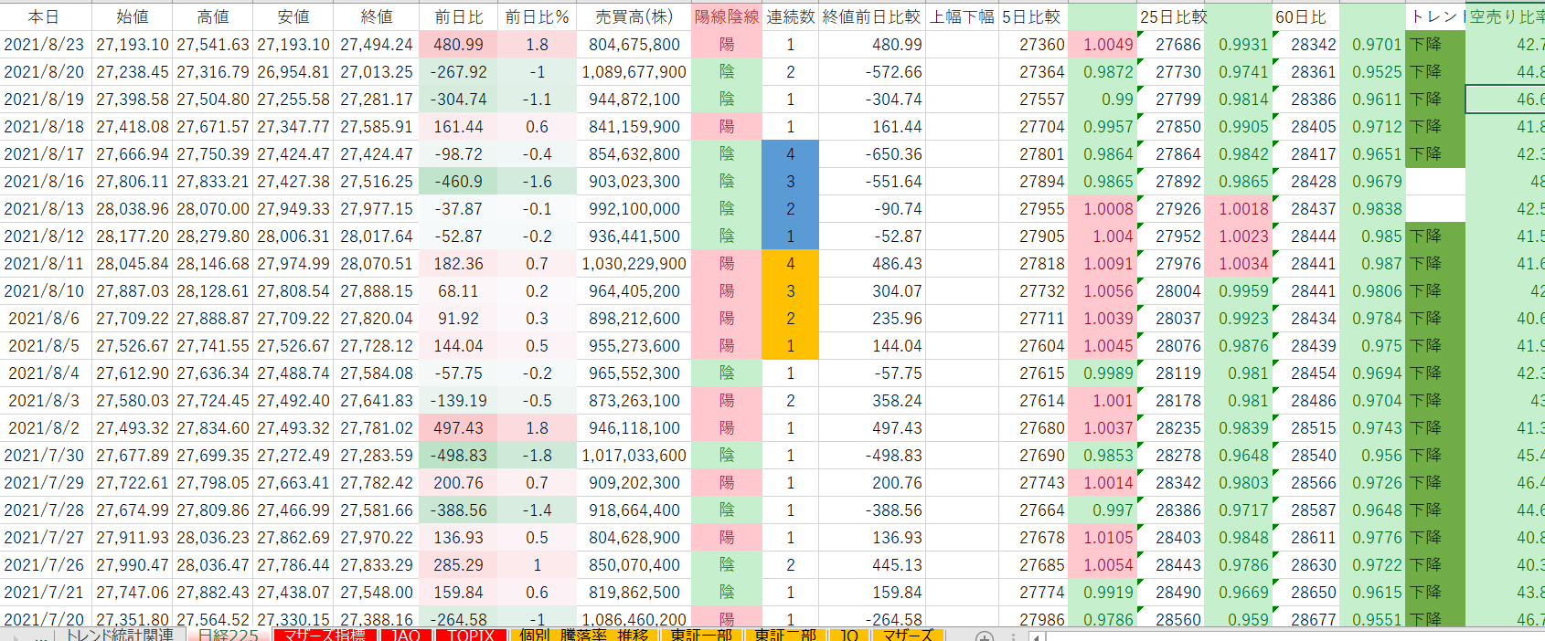 相場全体の閑散感を数値的に想定できていたからです。先週の金曜から買いを仕込んでます。これは統計を取るとわかる確率高く利益に代えられるポイントです。