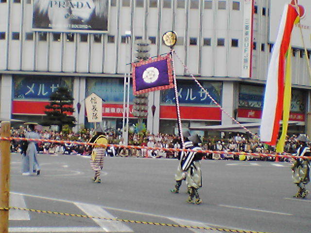 信長隊の行列では、1日目は、笹島交差点、栄え交差点で