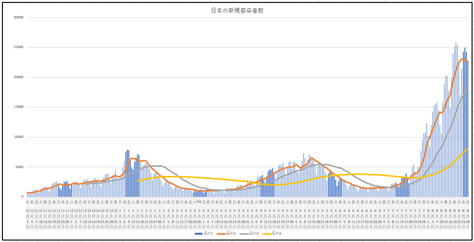 グラフを載せますが、東京に続いて日本の新規もなんとか