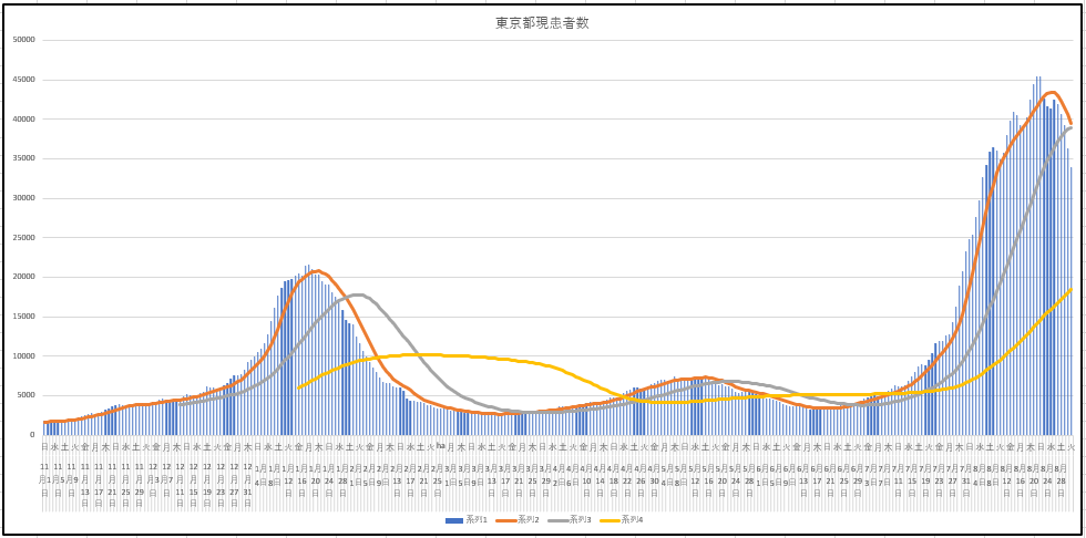 グラフは東京都の昨年11月から8月末までの新規感染、
