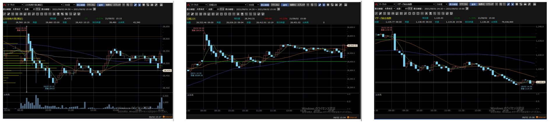 9:00日経GU最高値以降下落、後場うねり反発、引けまで弱い展開