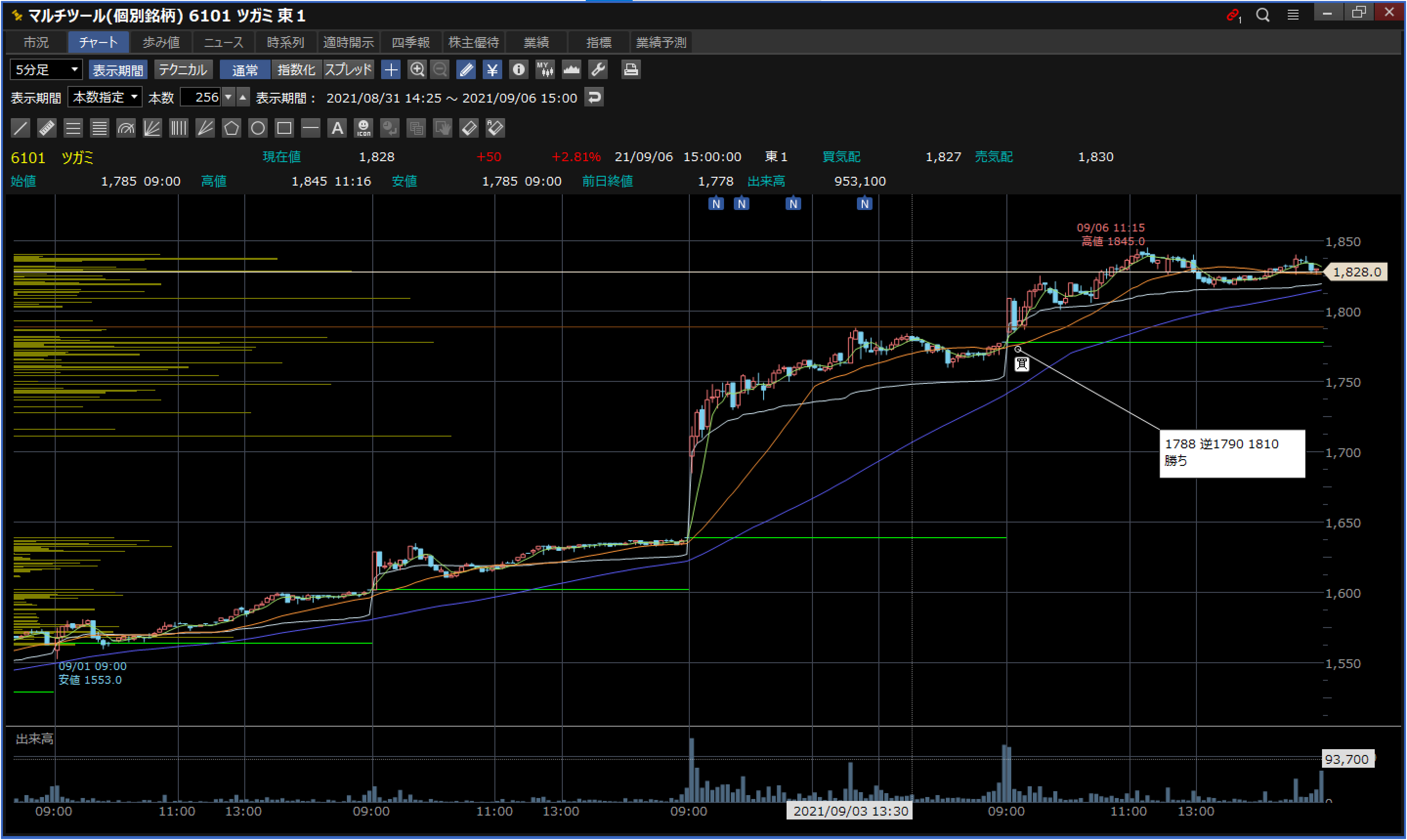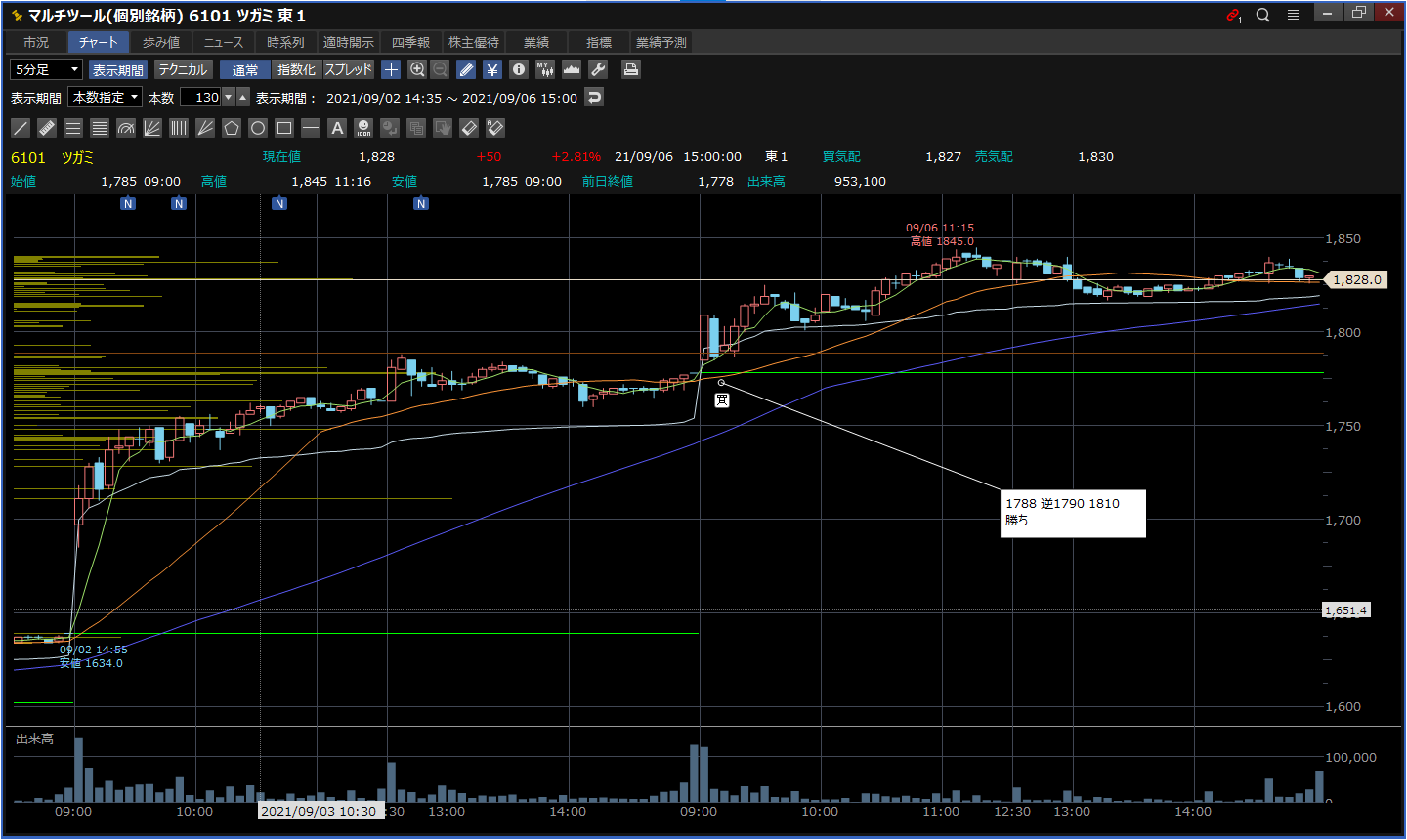 利確:滞空時間を見て利確(その後下落に転じたので〇)