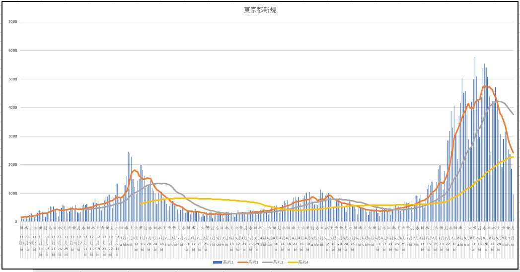 昨日の東京都の新規感染者はとうとう1000人以下となりました。神奈川県のほうが若干多かったらしい。