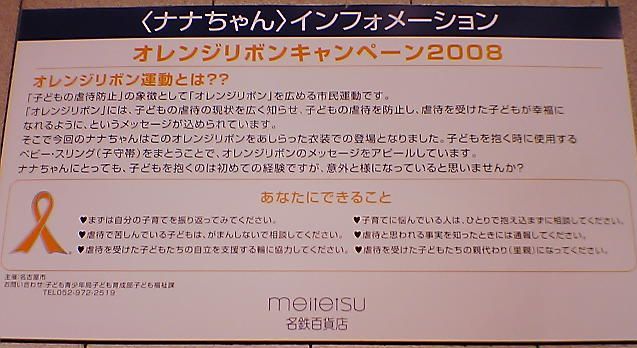 そこで今回のナナちゃんはこのオレンジリボンをあしらった衣装での登場となりました。