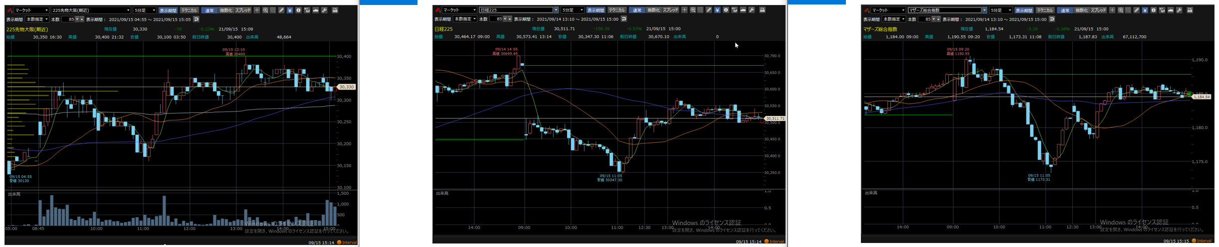15日の市場は日経平均が4日ぶりに反落。終値は前日比158円安の3万