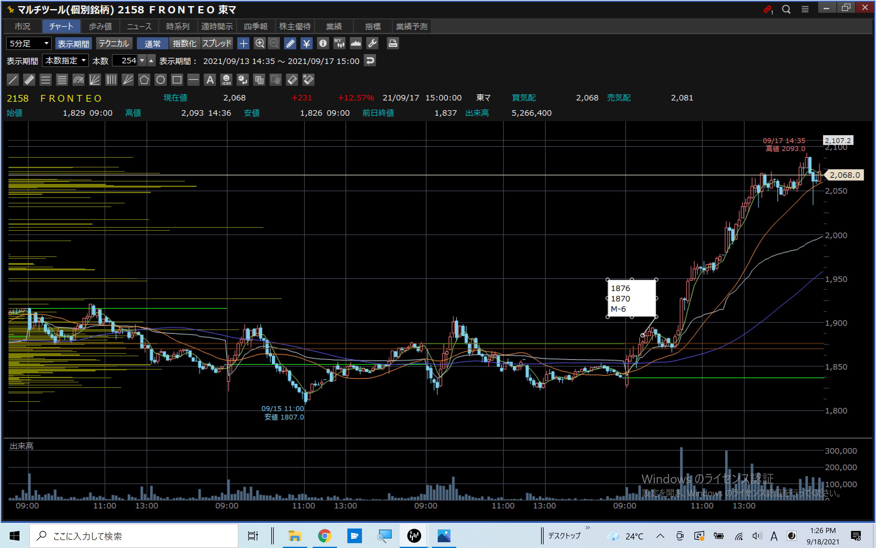 チャンス逃し。10:20からの上昇は兼業にはとれない。。