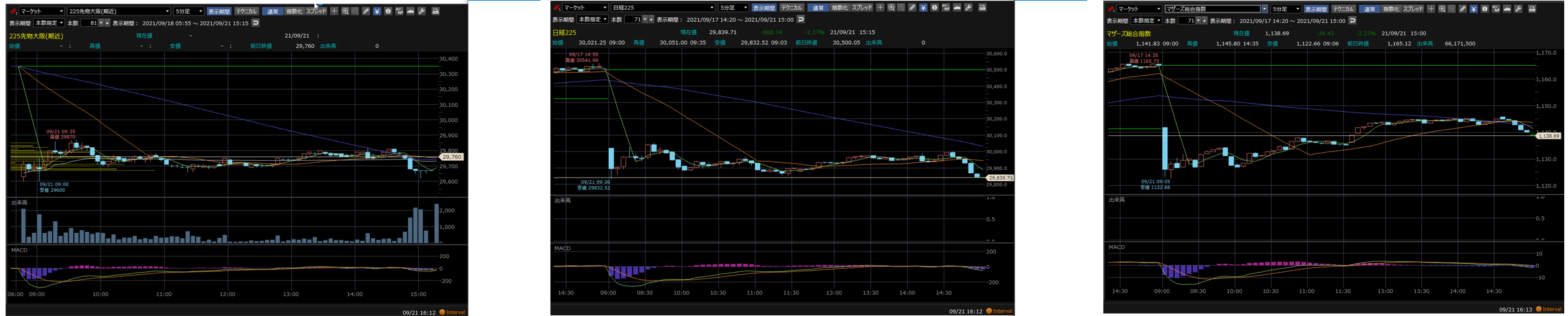 NYダウ 33970.47 -614.41 ( 9月20日) 米国10年国債利回り 1.311 %