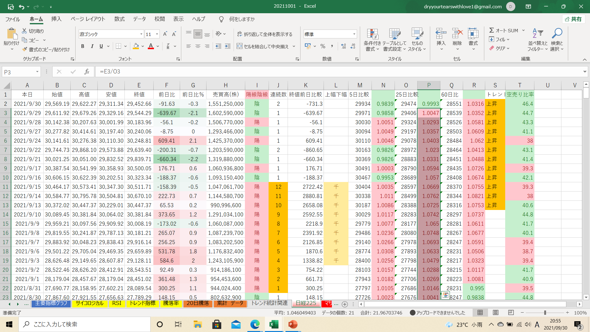 25日線で言うと21日ぶりに下回りました(;^ω^)
