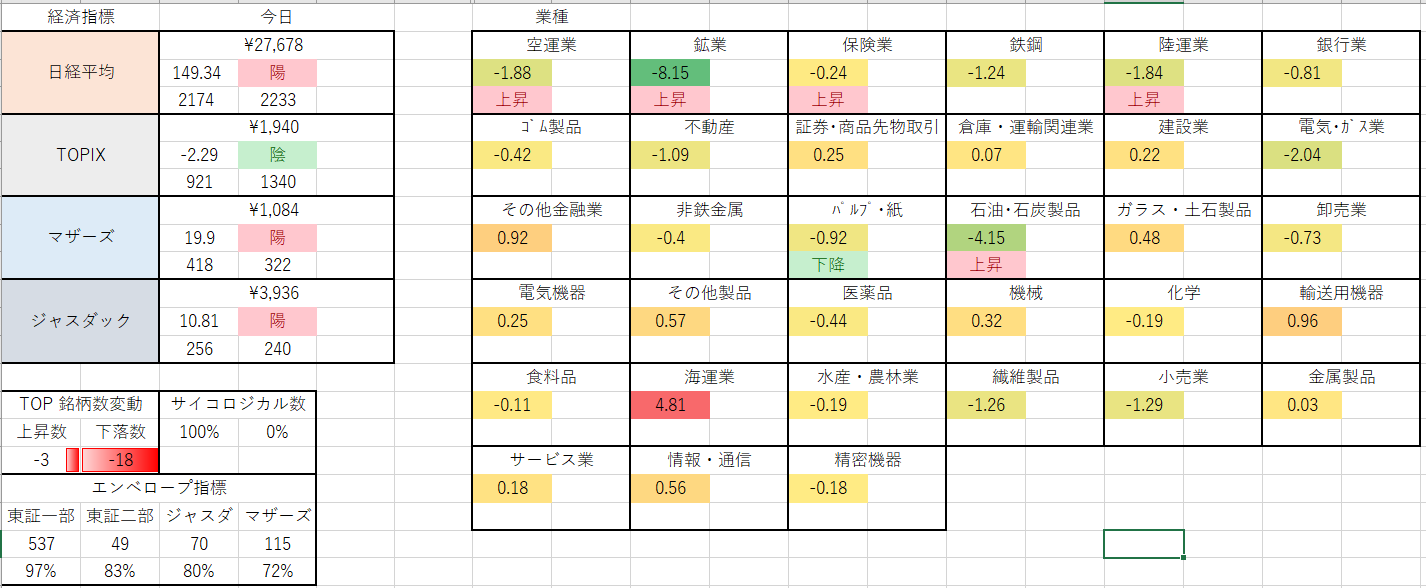 今日はすべての業種で