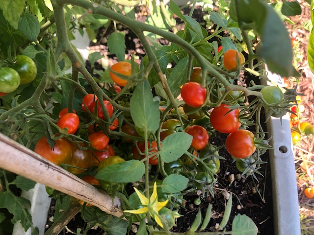 濃い緑色のトマトが多く、本当に赤くなってくれるか心配しています。来年はもう少し早く植えねばと反省です。