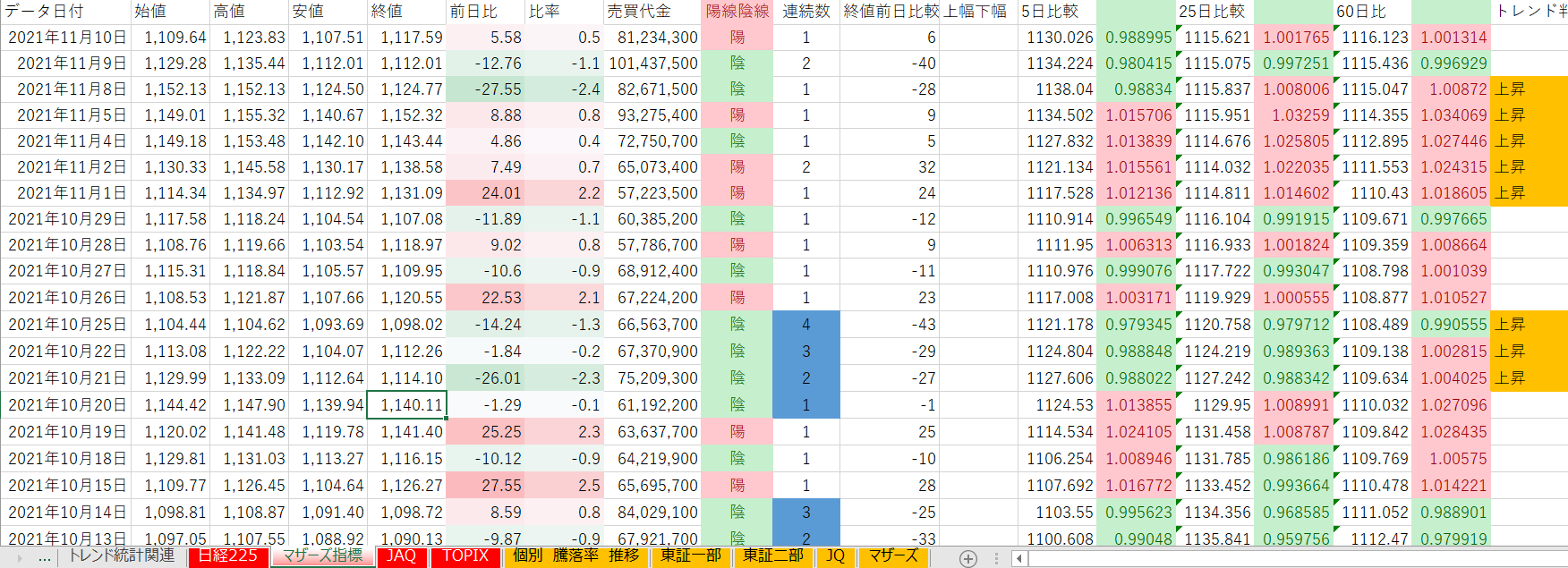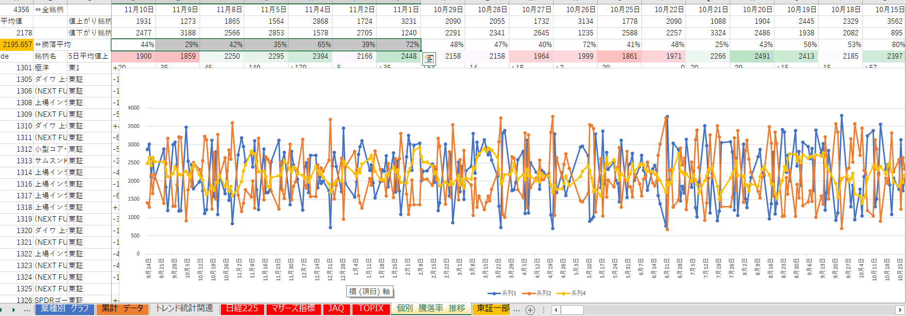 上昇トレンド業種と下降トレンド業種の数が一致しました。