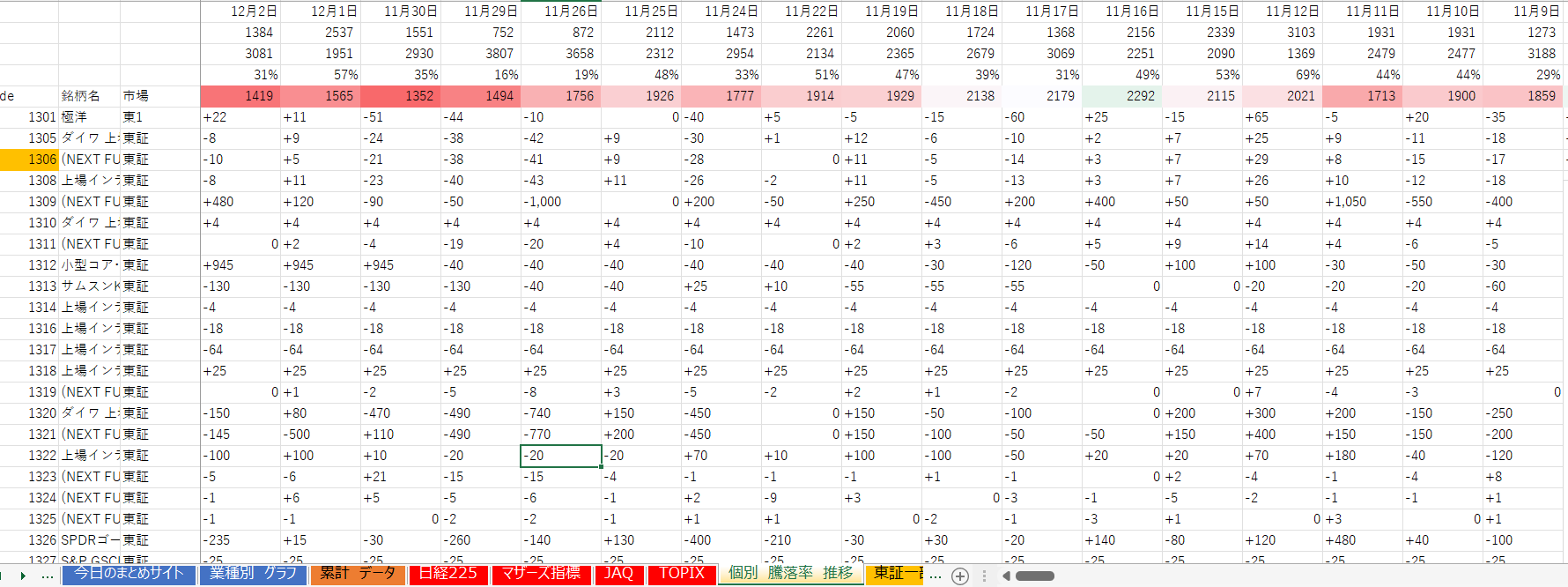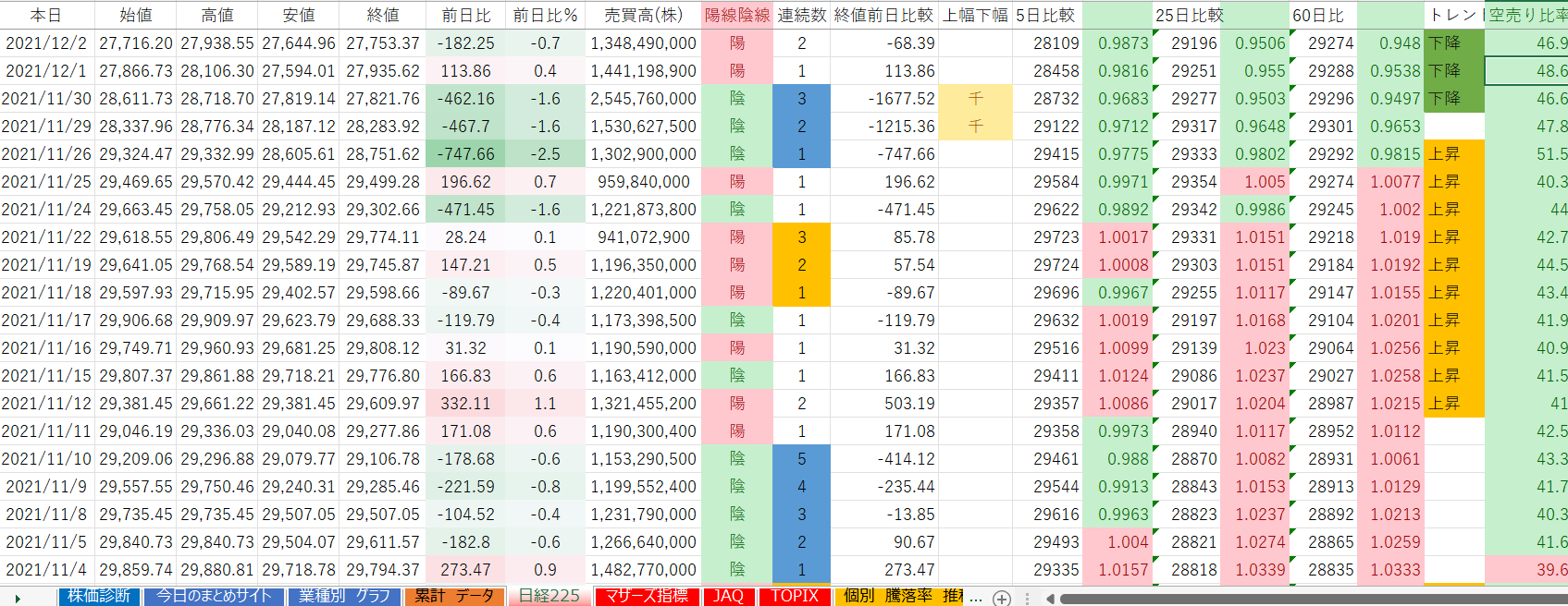 下降トレンド 26業種(+1業種)