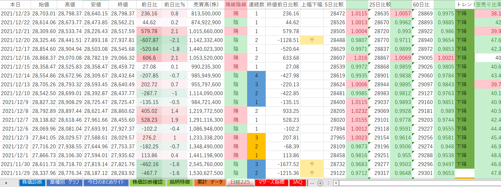 下降トレンド継続日数