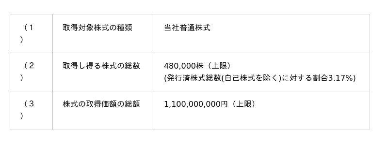 (注1)当該株数の変更は行いません。なお、市場動向等により、一部又は全部の取得が行われない可能性があります。