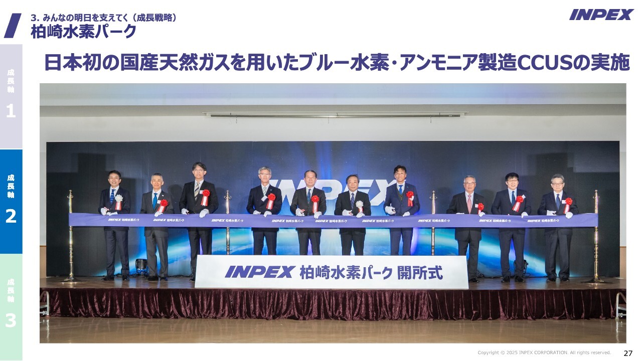 滝本:スライドは、今月11月に主要な政府関係者や地元関係者を招いて開所式を行った際の写真です。今後、ここで得られる知見を活用して、INPEXは水素事業にも挑戦していきたいと考えています。