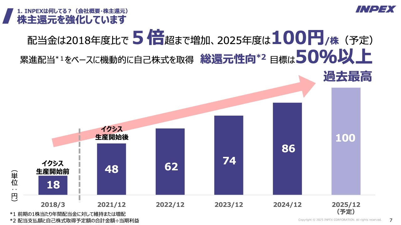 INPEX、日本最大規模のエネルギー開発企業として成長拡大 2025年度の総還元性向は約56%、1株当たり年間配当金は100円を予定
