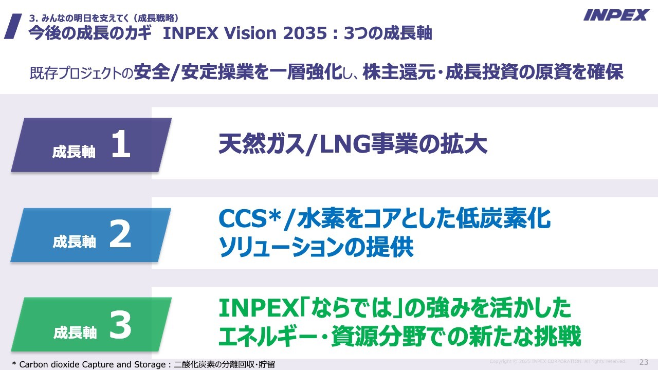 今後の成長のカギ INPEX Vision 2035:3つの成長軸