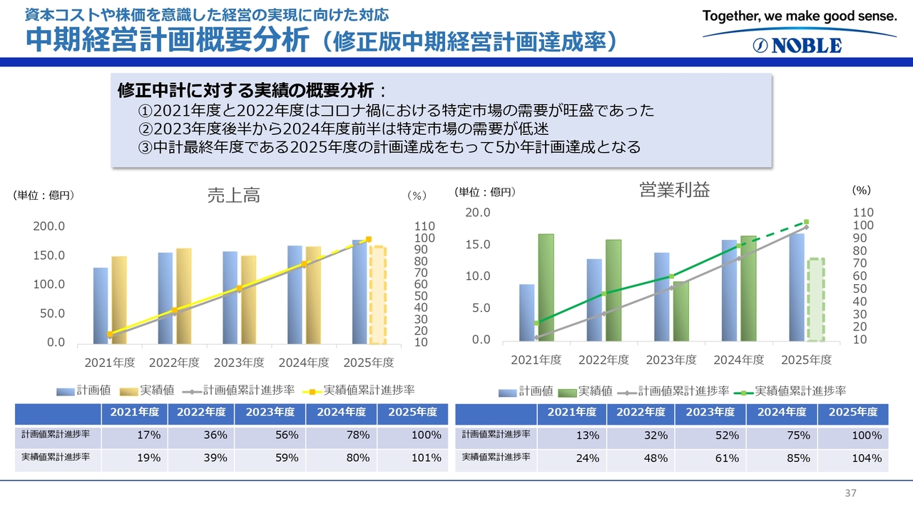 したがって、2025年度事業計画を着実に実行することで、中期経営計画の最終年度の目標達成に向けて、売上高と営業利益の確保に努めていきたいと考えています。