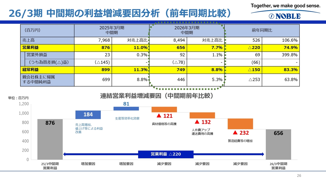 26/3期 中間期の利益増減要因分析(前年同期比較)