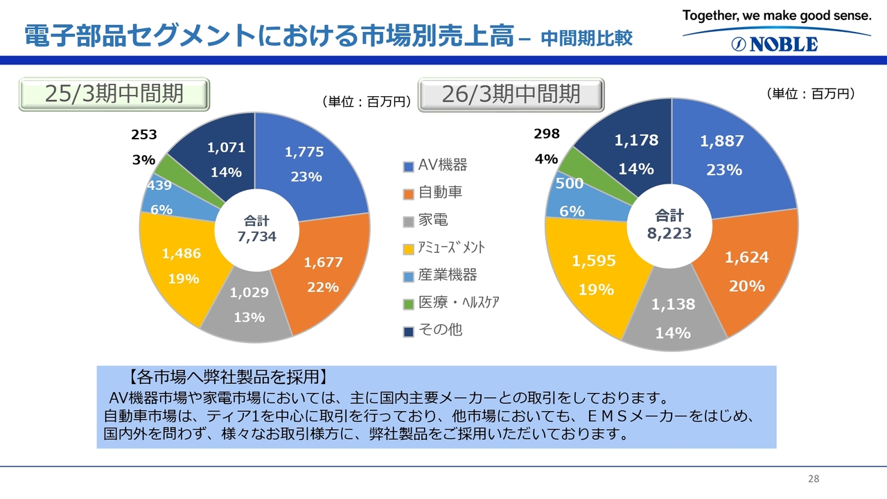 家電市場向けは、給湯器向けの需要が回復しており、下期には売上が増加する見込みで、12億円を見込んでいます。