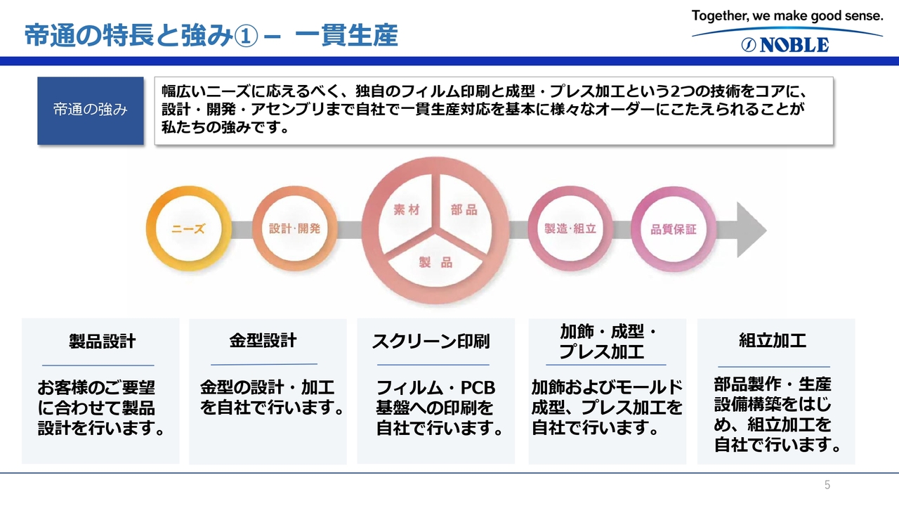 この強みである一貫生産により、パートナー企業が抱える課題をさまざまな過程で一緒に解決し、製造コストを抑えつつ付加価値を加えた提案を行うことができます。