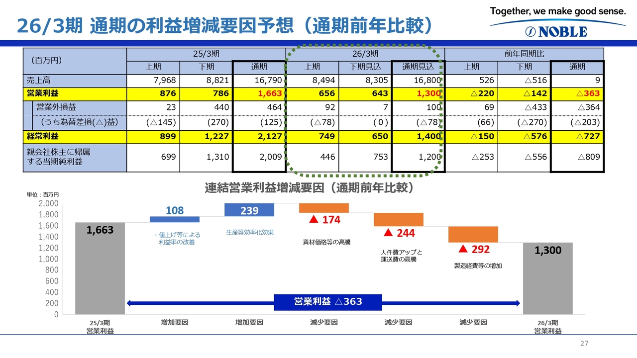 一方、経常利益については、為替レートを1USドル145円で想定しており、下期には為替差損益がほぼ発生しないという前提から、通期では14億円を見込んでいます。