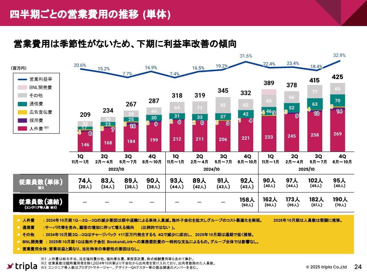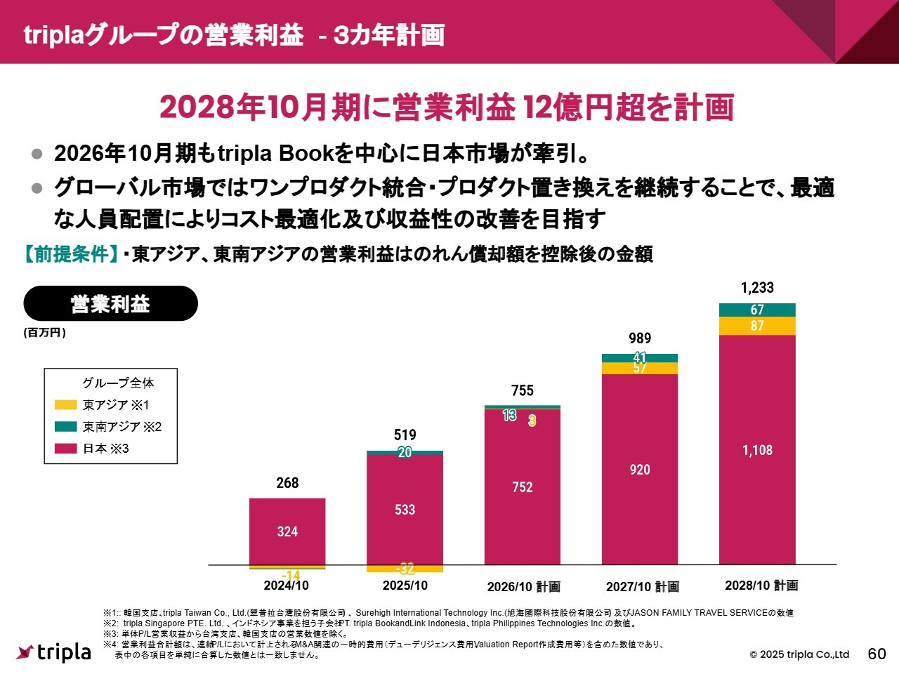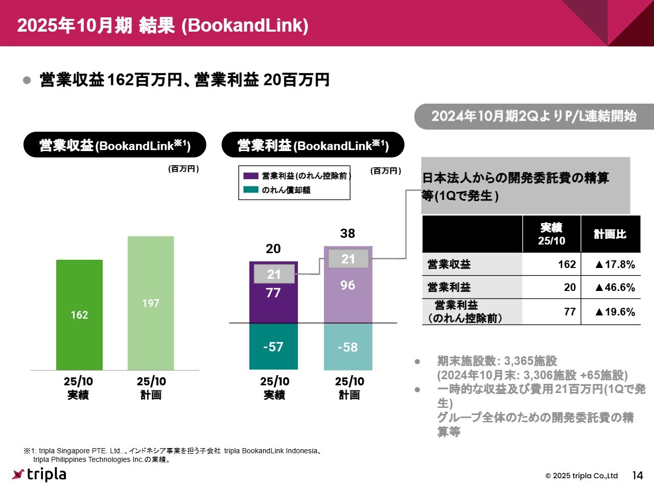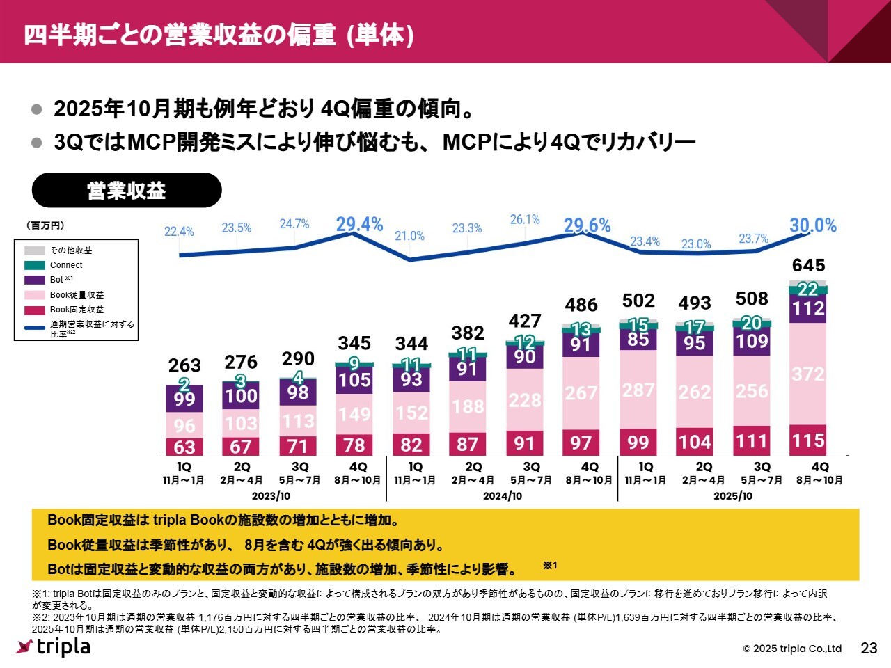 「tripla Book」の季節性については、引き続き非常に大きな影響を受けていますが、第4四半期は国内インバウンド宿泊が好調で、総計で1億8,000万人が宿泊しました。当社は544億円のGMVを達成することができました。