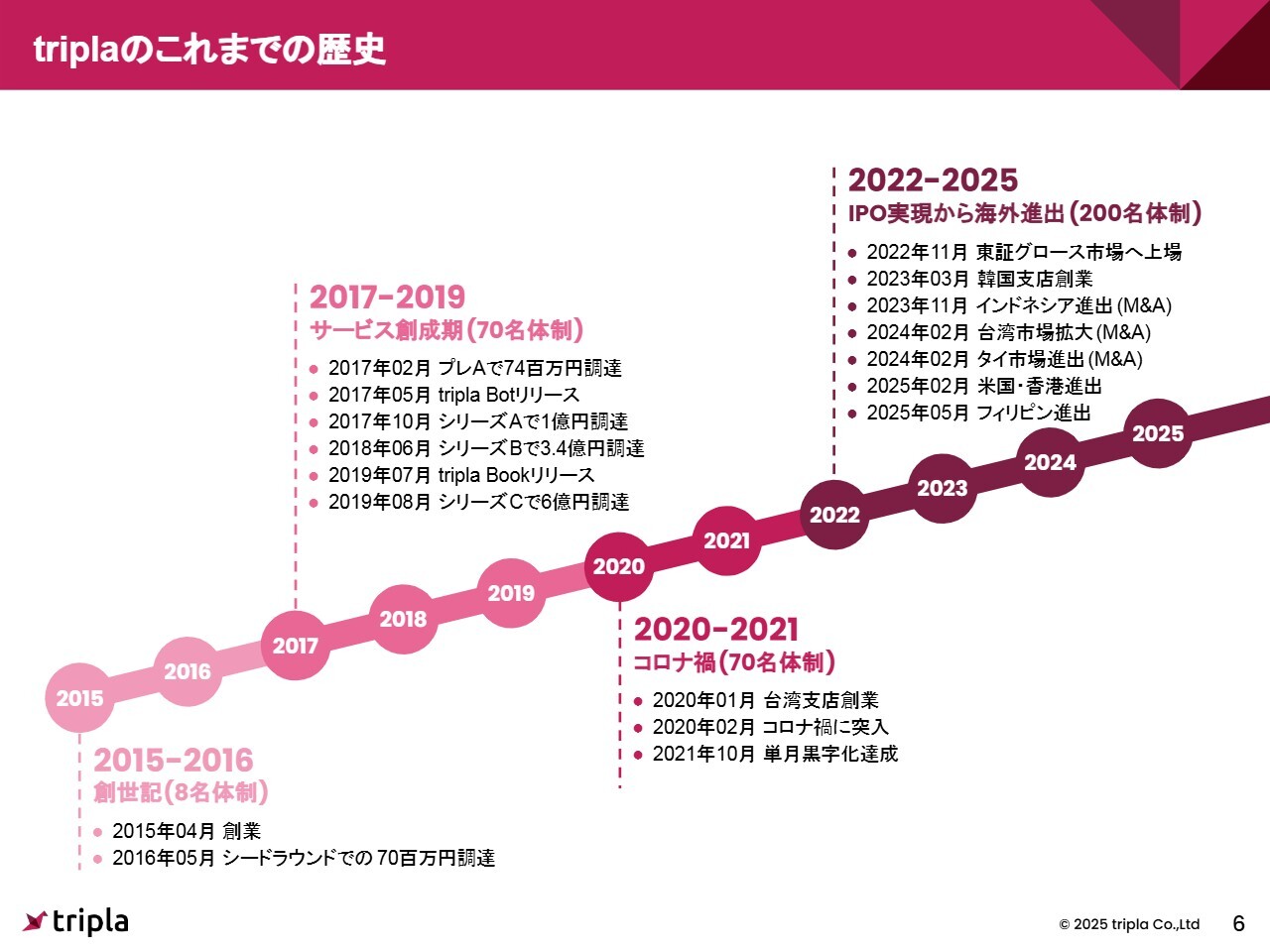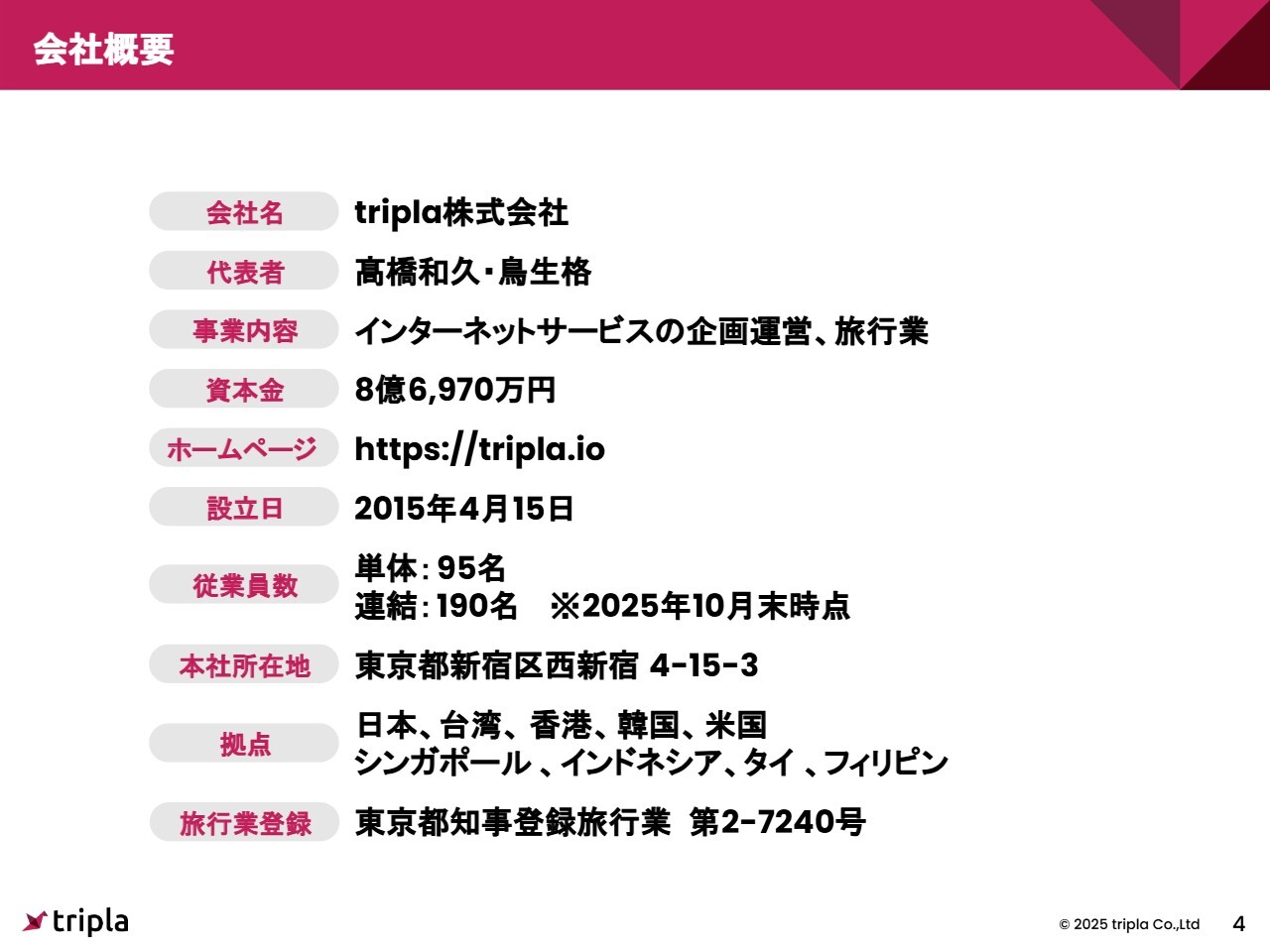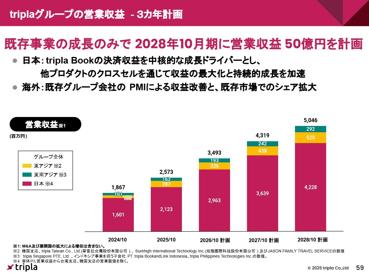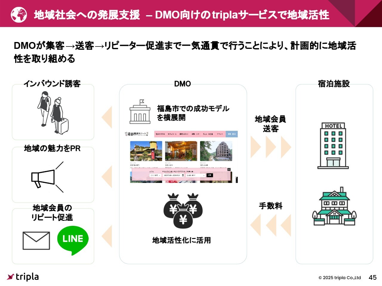 さらに、現在OTAサイトとして提供している「tripla ai」の拡張やDMO施策の拡販、そして海外展開の加速を、現段階で発表している中での成長ドライバーと捉え、ビジネスを進めています。
