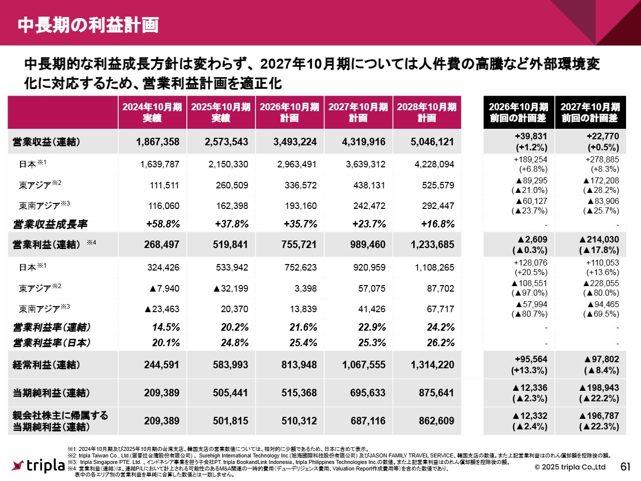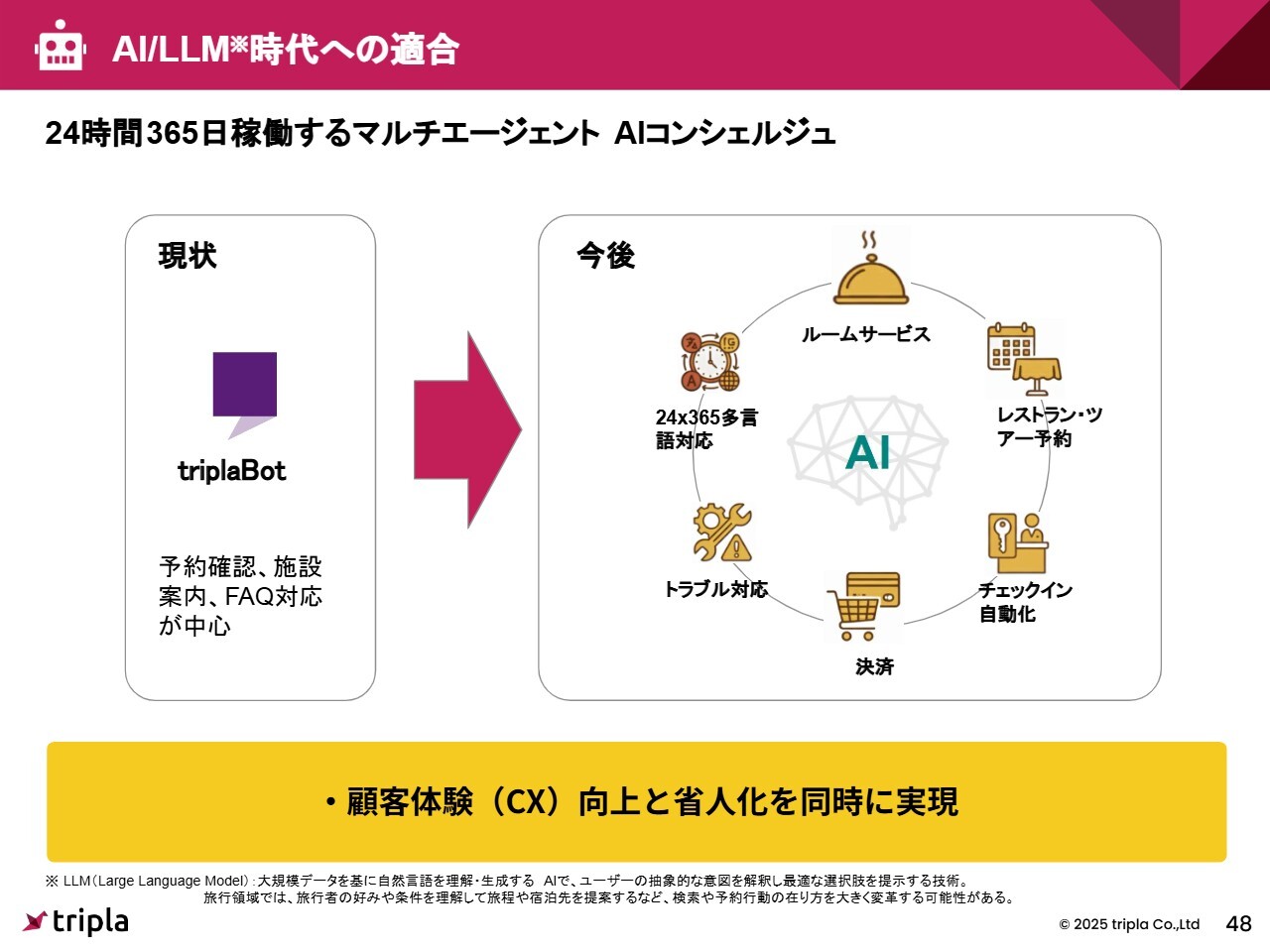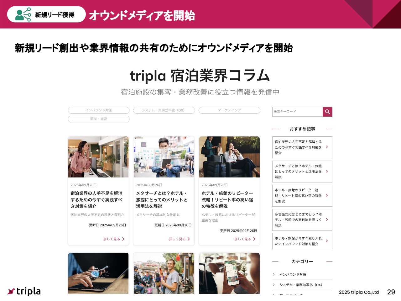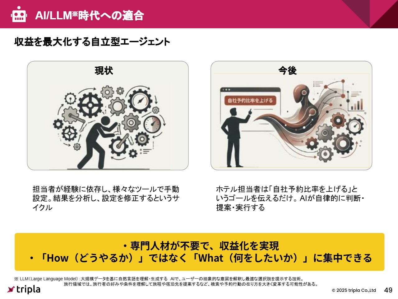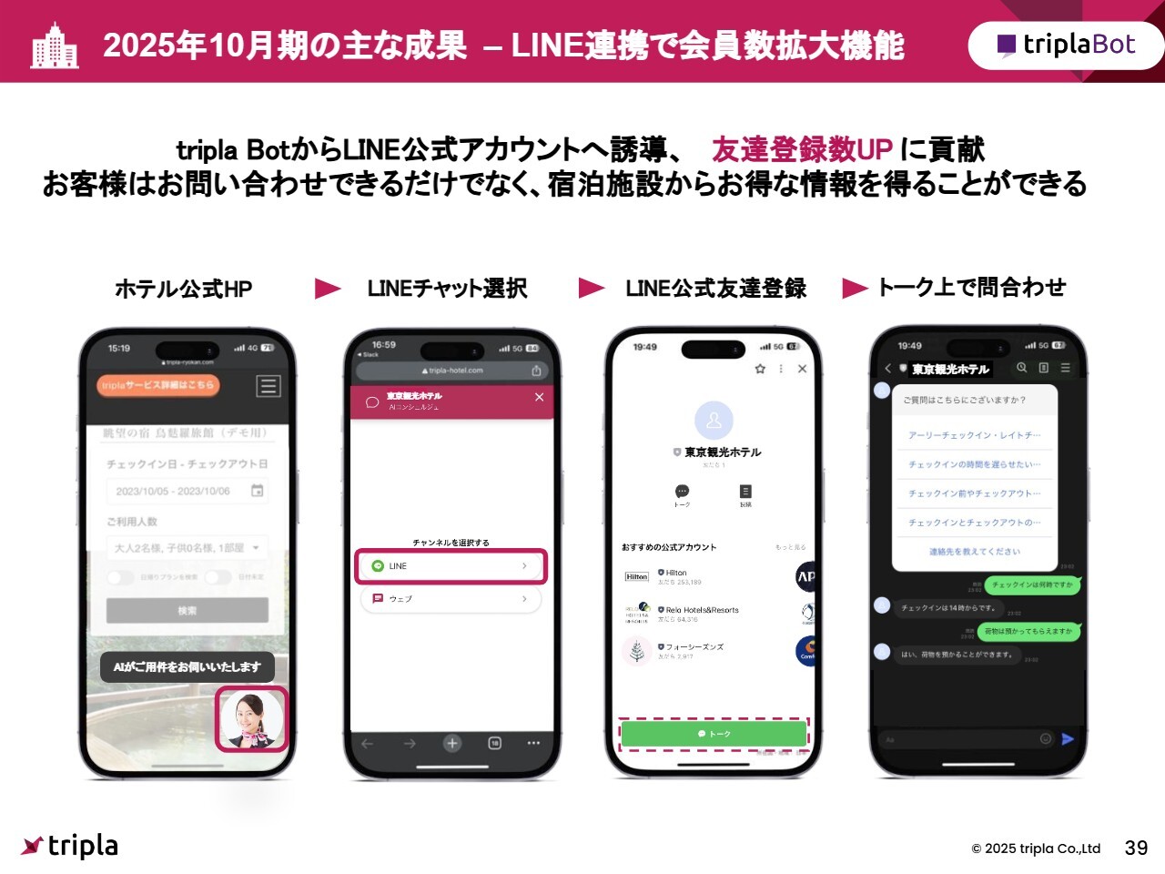 さらに、現在OTAサイトとして提供している「tripla ai」の拡張やDMO施策の拡販、そして海外展開の加速を、現段階で発表している中での成長ドライバーと捉え、ビジネスを進めています。