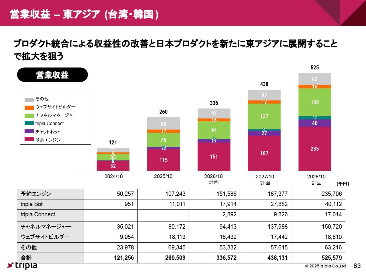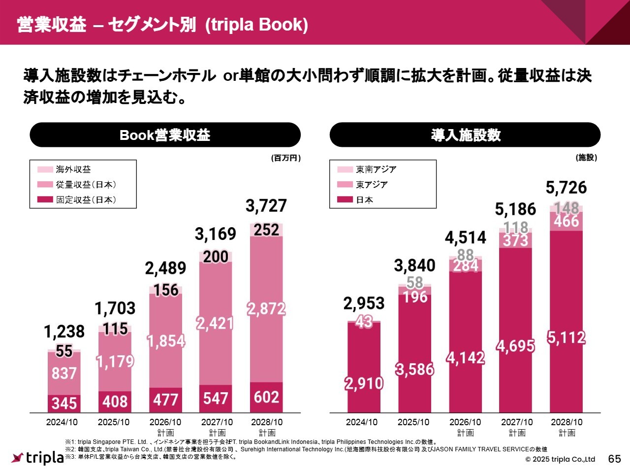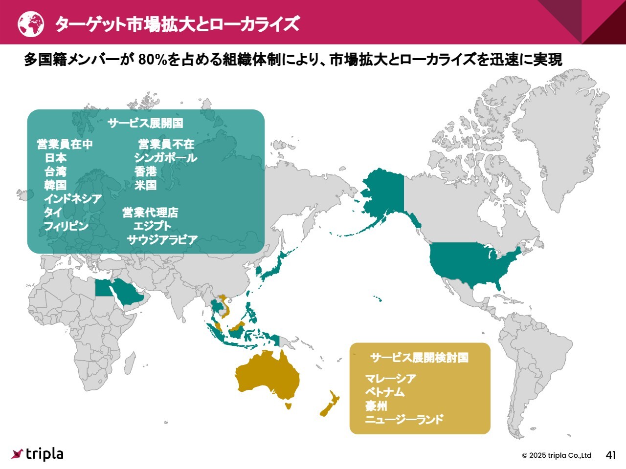 実際に、韓国、台湾は非常に伸びてきていると感じています。台湾では、Surehigh社の「EZ HOTEL」というサービスがありましたが、これは非常に古いサービスでした。これを「tripla Book」に置き換えることで、売上が伸びているところもあります。このような状況を踏まえ、台湾や韓国の市場で拡販を進めています。