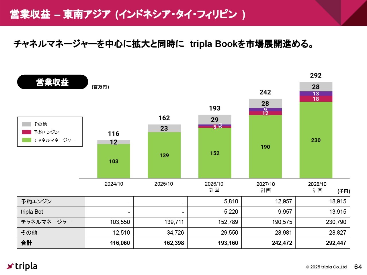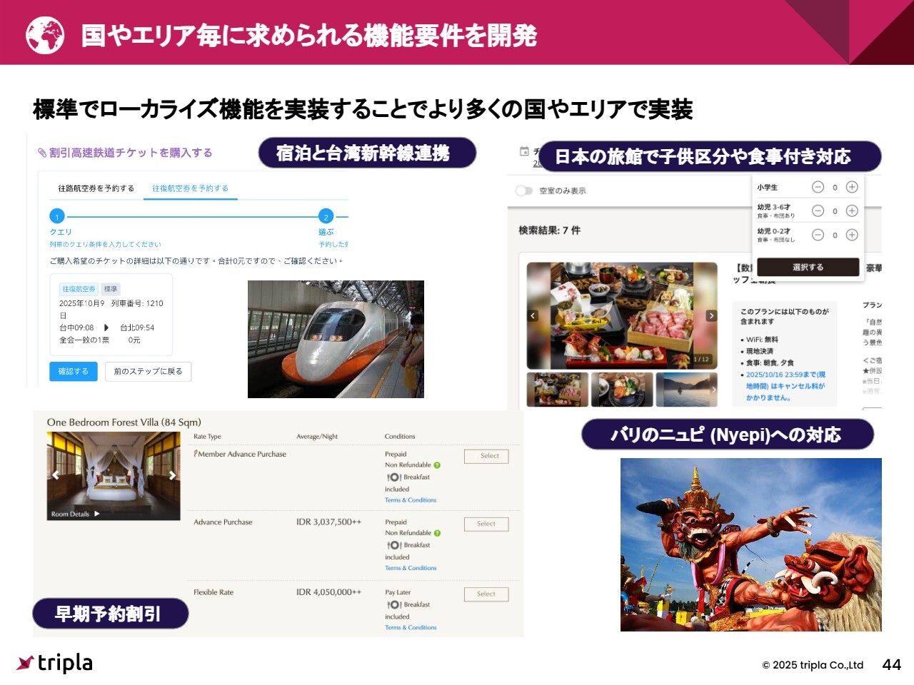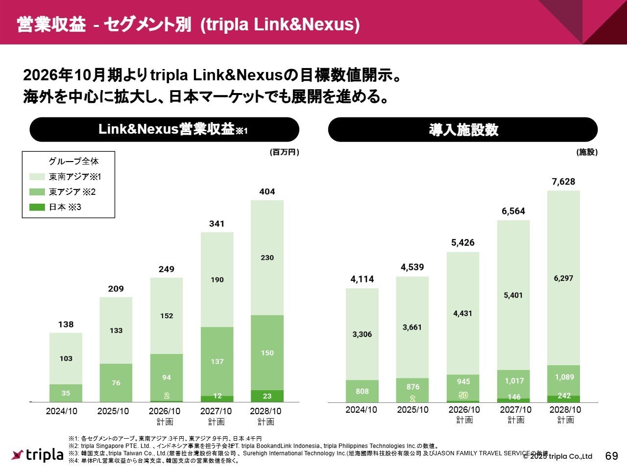 実際に、韓国、台湾は非常に伸びてきていると感じています。台湾では、Surehigh社の「EZ HOTEL」というサービスがありましたが、これは非常に古いサービスでした。これを「tripla Book」に置き換えることで、売上が伸びているところもあります。このような状況を踏まえ、台湾や韓国の市場で拡販を進めています。