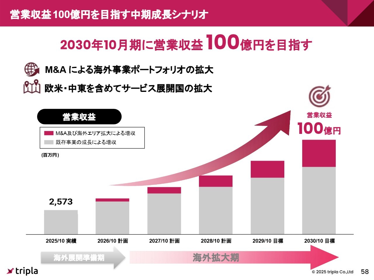 今後の成長ドライバーに関しては、海外を主軸とする方針です。ただし、展開国の拡大やM&Aは不確定要素が大きいため、計画に含めることは投資家のみなさまを混乱させる可能性があります。