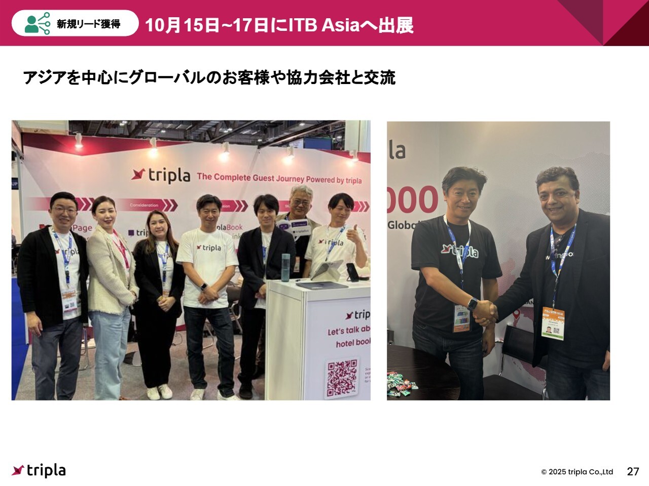 日本と同様に、「tripla Book」「tripla Bot」「tripla Connect」といった商品のクロスセルを海外でも継続していきたいと考えています。