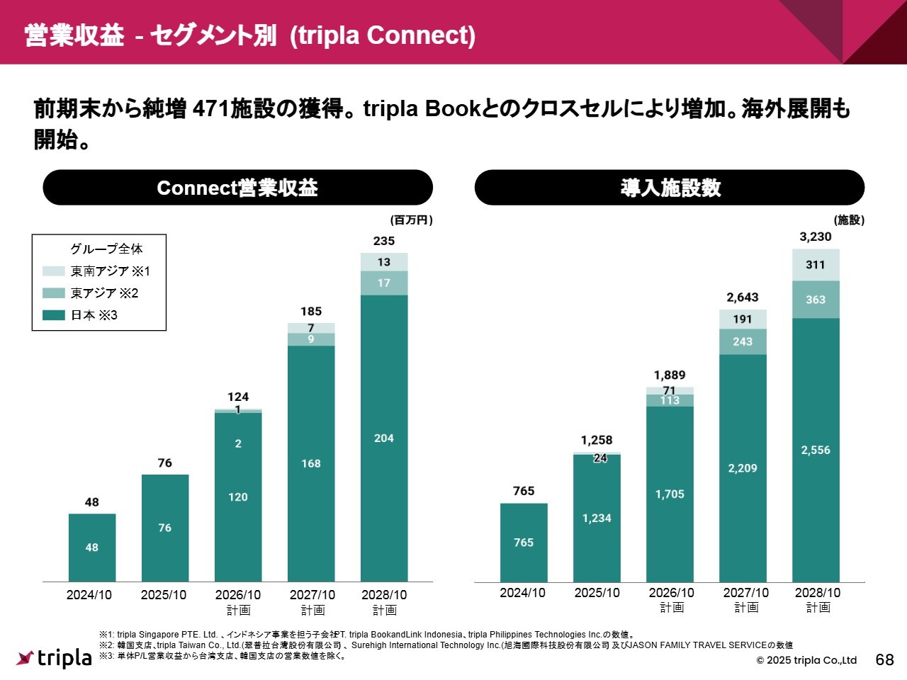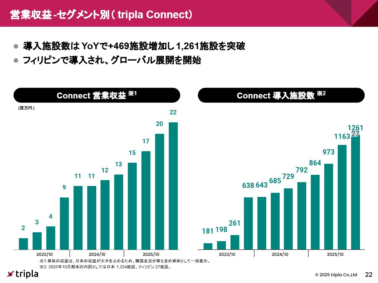 「tripla Connect」です。導入施設数は順調に増加しており、第4四半期からは海外展開も開始し、全体で1,261施設に導入が完了しています。