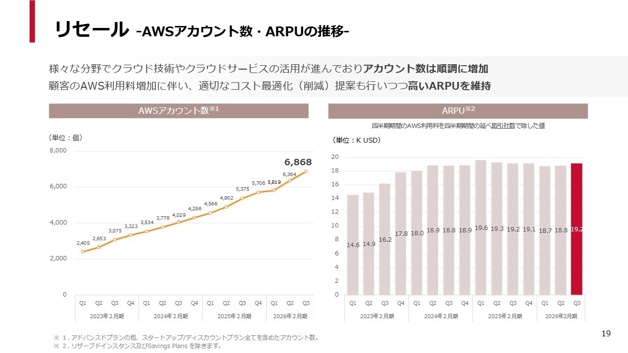 以前から何度かお伝えしているとおり、単価はできるだけ上がり過ぎないようにコントロールしています。その結果として、2026年2月期は1.8万米ドル前後という高いARPUを維持しています。